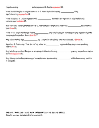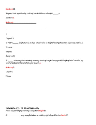 Anong klaseng mamamayan ang inilarawan na Rizal sa pagkatao ni G. Sino si Ginoong Pasta. Bilang pagtupad sa kanilang misyon tinungo ni Isagani ang tanggapan ni Ginoong Pasta.